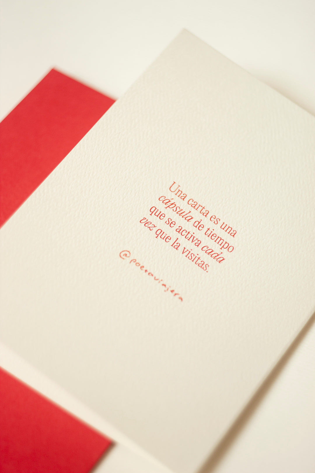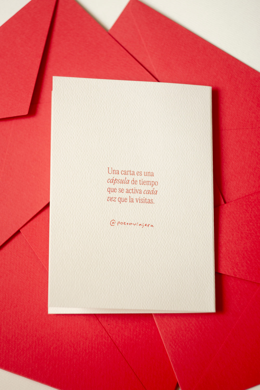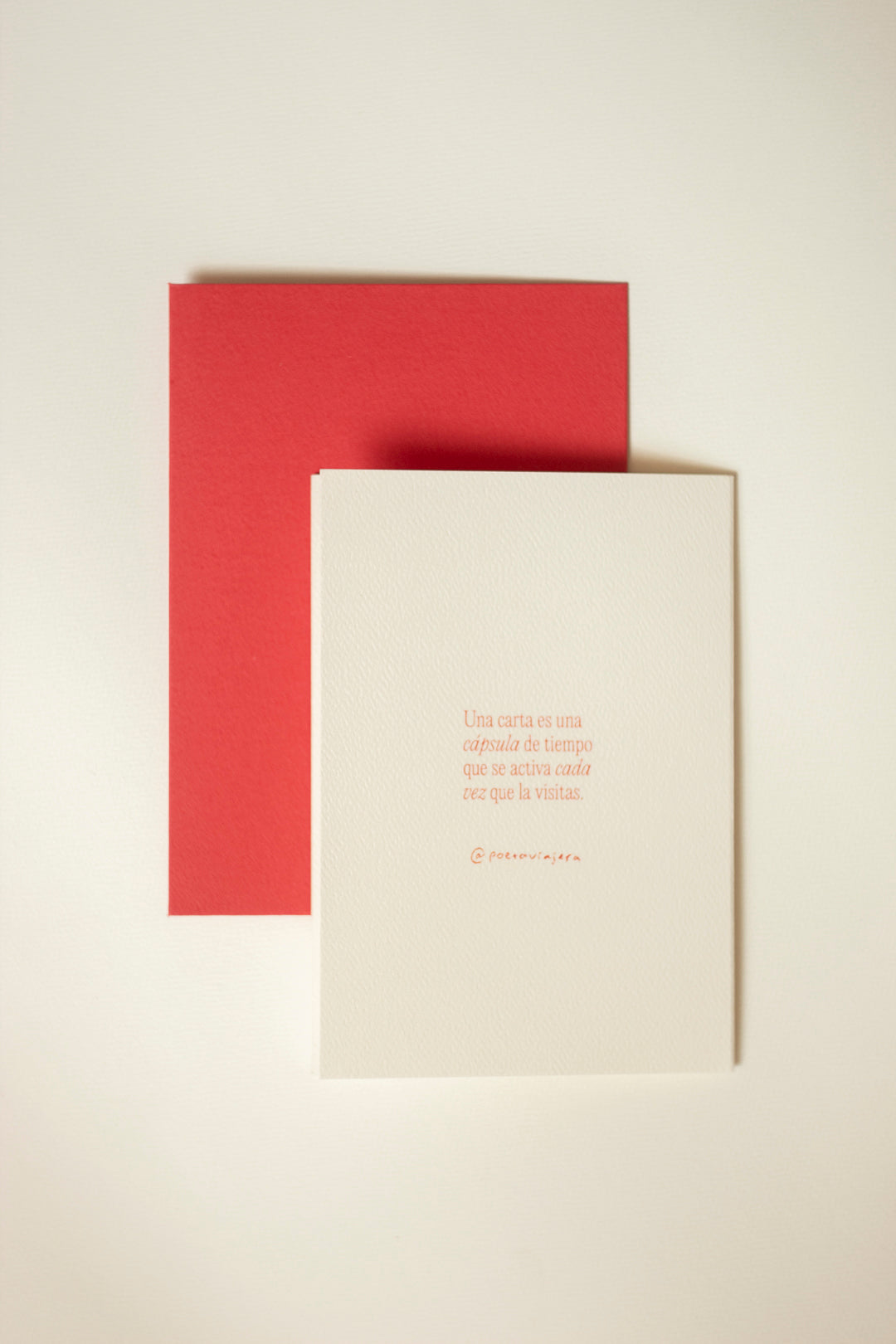 Las cartas son cápsulas de tiempo que se activan al releerlas. La tarjeta de regalo "En este lugar" tiene espacio para escribir tu carta dentro, con fecha, espacio para destinatario y firma. Ideal para acompañar todos tus detalles significativos.